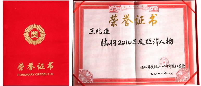 予“臨朐2010年度經濟人物”榮譽稱號。