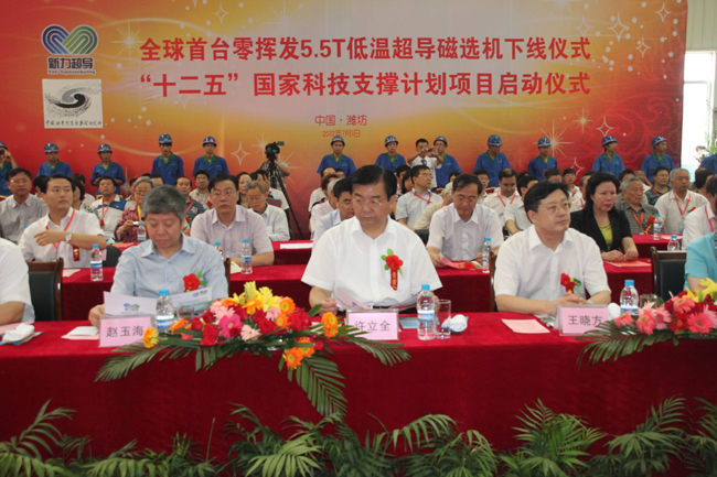 人民網濰坊7月2日電 7月1日,全球首臺零揮發5.5T低溫超導磁選機下線儀式和"十二五"國家科技計劃支撐項目“超導磁選機關鍵技術開發”啟動大會在濰坊舉行。