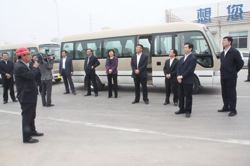 3月29日,全縣骨干財源項目點評會議召開??h人大常委會主任、縣委書記顧建華,縣委常委、縣長劉裕斌等縣領導來公司現場察看。圖為王學軍副總向縣領導匯報項目進展情況。