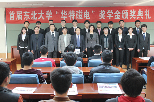 4月13日下午,漢卿會堂首屆東北大學資源與土木工程學院“華特磁電”獎學金頒獎典禮舉行。公司總裁王兆連,副總裁劉風亮和東北大學校友總會、校董會、基金會管理辦公室主任李鶴,學院黨委書記王立慧,副院長韓躍新,黨委副書記兼副院長劉維以及所有獲獎同學參加了頒獎典禮。頒獎典禮由院校學生工作辦公室主任吳迪主持。