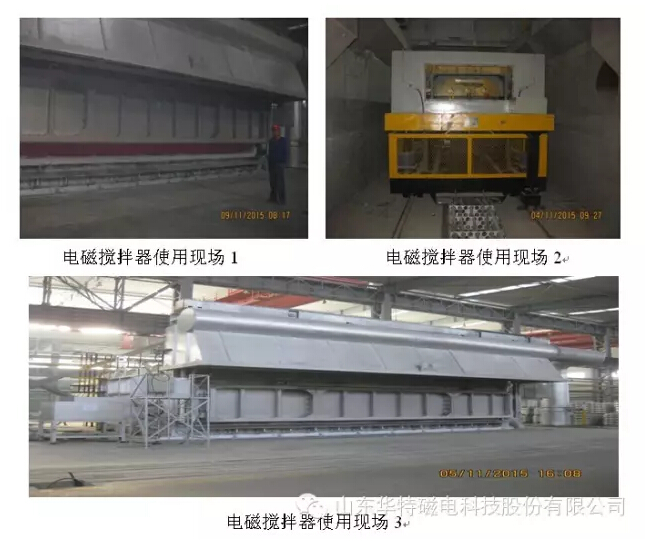 由山東華特磁電科技股份有限公司生產(chǎn)的交直交電磁攪拌器于2015年11月6號在(西部水電)青海慶豐鋁業(yè)公司投入使用,經(jīng)用戶使用證明:各項(xiàng)性能指標(biāo)檢驗(yàn)均符合相關(guān)標(biāo)準(zhǔn);通過攪拌15分鐘后(一個周期),爐內(nèi)溫度上下偏差小于5度;且合金成分相對偏差小于百分之五,用戶使用非常滿意。