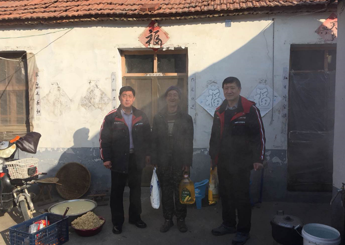 在老莊子村,慰問組在村兩委成員的陪同下,走訪慰問了25個因病、因傷等情況致貧的困難戶。慰問組每到一戶都主動詢問他們的家庭情況、經(jīng)濟(jì)來源、生活條件以及他們生活中的困難,為他們送去了油、米、面等生活用品,帶去了公司董事長王兆連和全體員工的關(guān)懷與祝福。鼓勵他們歡歡樂樂過春節(jié),健健康康迎新年。告訴他們黨和政府不會忘記他們,遇到困難及時聯(lián)系,村兩委和華特磁電公司是他們堅強(qiáng)的后盾。
