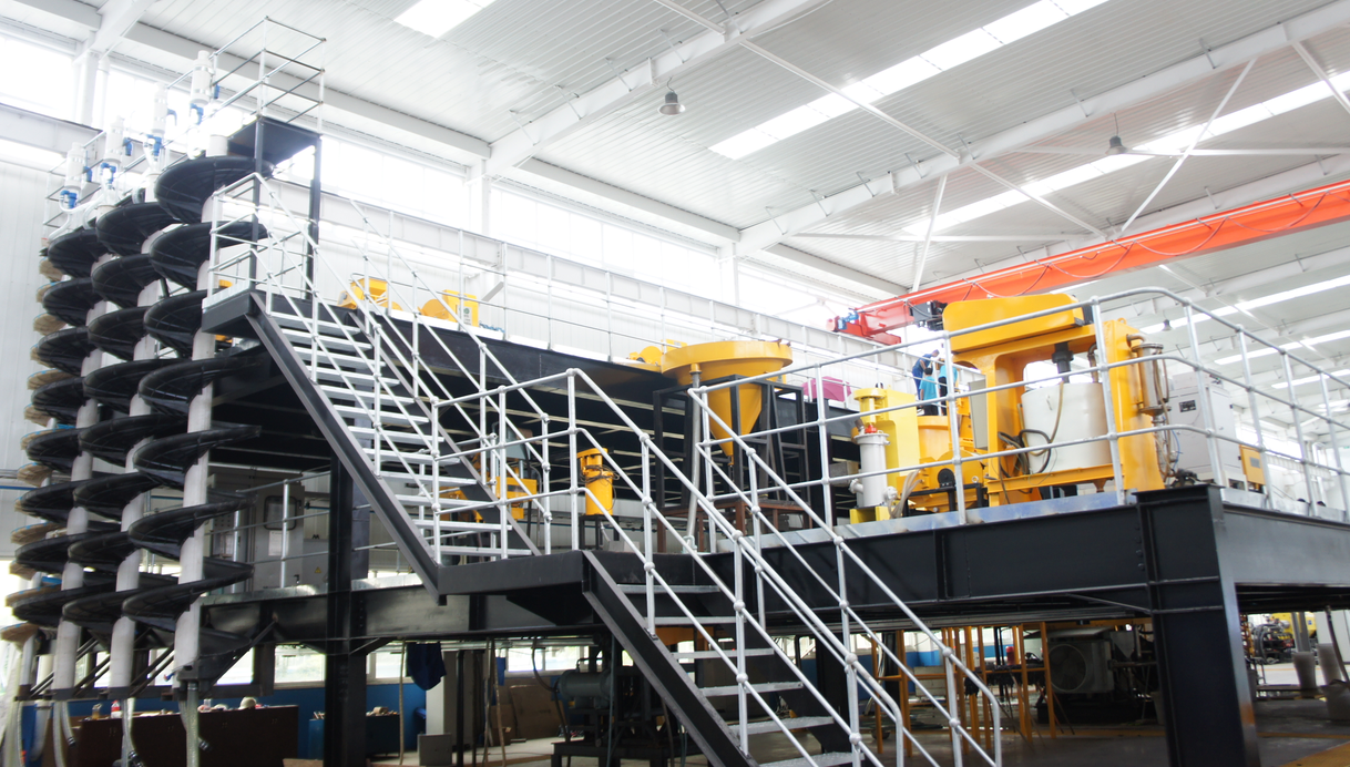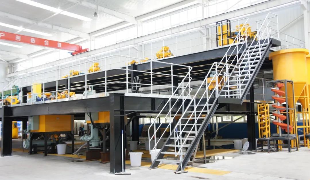 在大型的鋼結構平臺上設有多功能實驗生產線系統,在這里可以模擬濕法選礦廠工業生產線的運行狀態,可對各種礦物進行磨礦—分級—選礦—脫水等全流程半工業化選礦實驗,通過對不同試驗機的搭配組合,可滿足各種礦物所需要的選別工藝流程。通過這個全流程系統化的實驗,更加確保實驗數據的可靠性和穩定性。